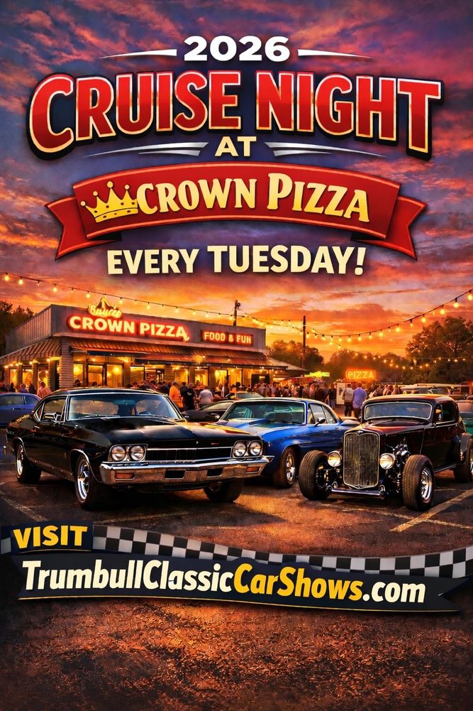 Cruise Night Every Tuesday Starting April 28th 2026 4pm to 8pm Crown Pizza