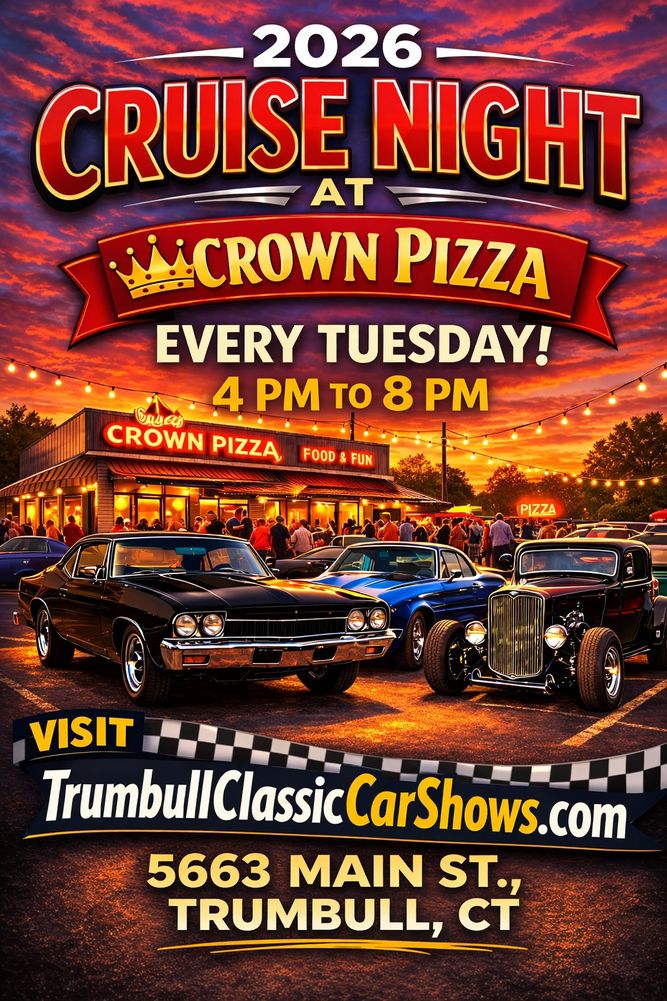 Cruise Night Every Tuesday Starting April 28th 2026 4pm to 8pm Crown Pizza